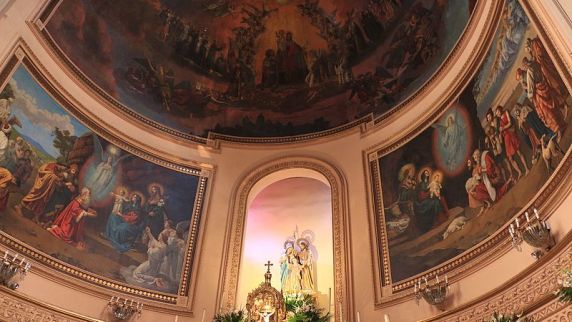 En sus hermosos vitrales se pueden observar los misterios de la fe cristiana y distintos pasajes de la Biblia