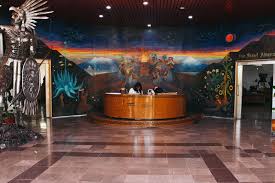 El vestíbulo se encuentra adornado con un gran mural del pintor Sergio Jauver. [3]