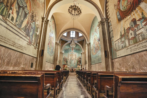 Destacan los murales del templo, hechos con pequeños mosaicos que forman imágenes con pasajes bíblicos, algunos con escritos en árabe, otros en griego. Su estilo contrasta frente a otras iglesias donde predominó el barroco. Es una iglesia oriental católica de rito bizantino que pertenece a la Iglesia Greco-Católica Melquita. La mayoría del clero y fieles son de origen árabe por lo que las misas se dan en árabe y español.[5]