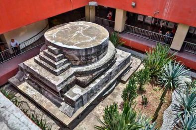 La Pirámide Ehecatl se descubrió cuando se construyó el metro en la década de los sesentas. Este centro ceremonial que adoraba al dios del viento se convirtió en el atractivo principal del trasbordo entre las líneas 1 y 2 de la Estación Pino Suárez. Ubicada en la Colonia Centro Centro Histórico en la Alcaldía Cuauhtémoc. Este lugar es probablemente uno de las Zonas Arqueológicas más visitadas en toda la Ciudad de México debido a que se encuentra en el cruce de dos direcciones de una de las estaciones más utilizadas diariamente. La icónica forma de este templo es un símbolo de identidad para los habitantes de la ciudad que seguramente recordarán La pirámide del Metro.